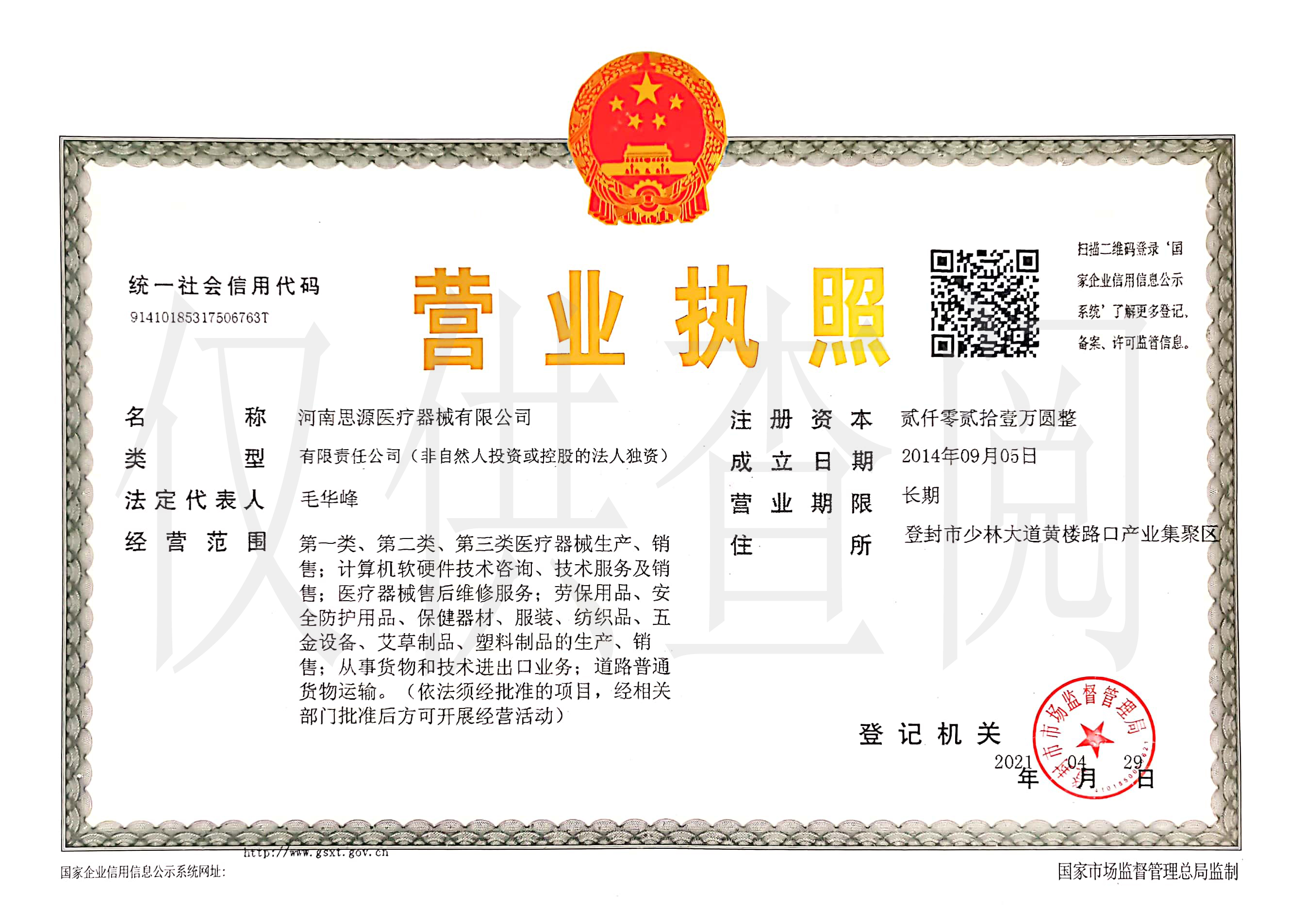 河南思源醫療器械有限公司成立于2014年11月,注冊資金2021萬元。公司始終發心為人,經過十幾年的風風雨雨,不斷成長,成為醫療器械生產、批發、零售企業,是河南省醫療器械商會會員和中國醫療器械行業協會會員。
